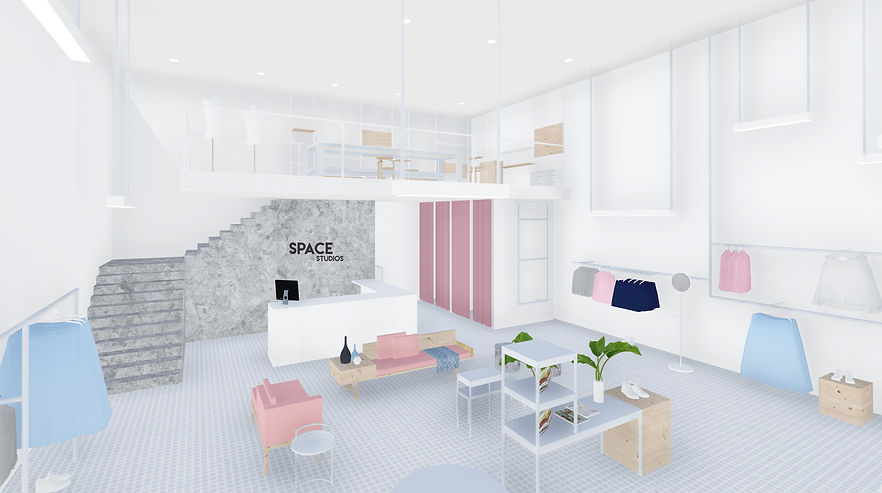 The shop consists of two levels: level 1 forms the main retail area with a small living space whereas level 2 is a loft space that functions as a public workshop area and studio space for the in-house designers.